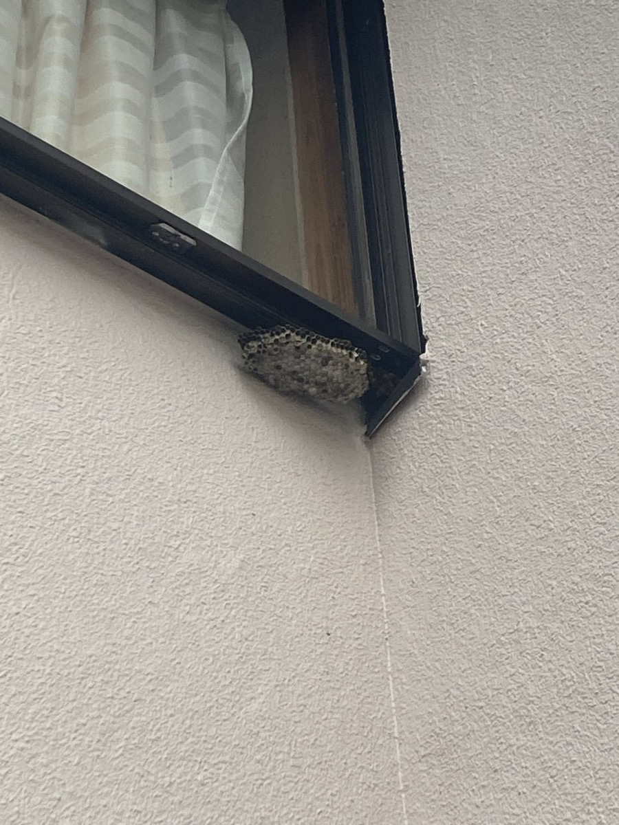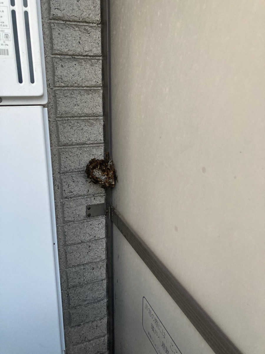 雨戸を開閉する際に発見される危険な場所。手を入れた瞬間に攻撃される可能性があり、緊急性の高い案件です。