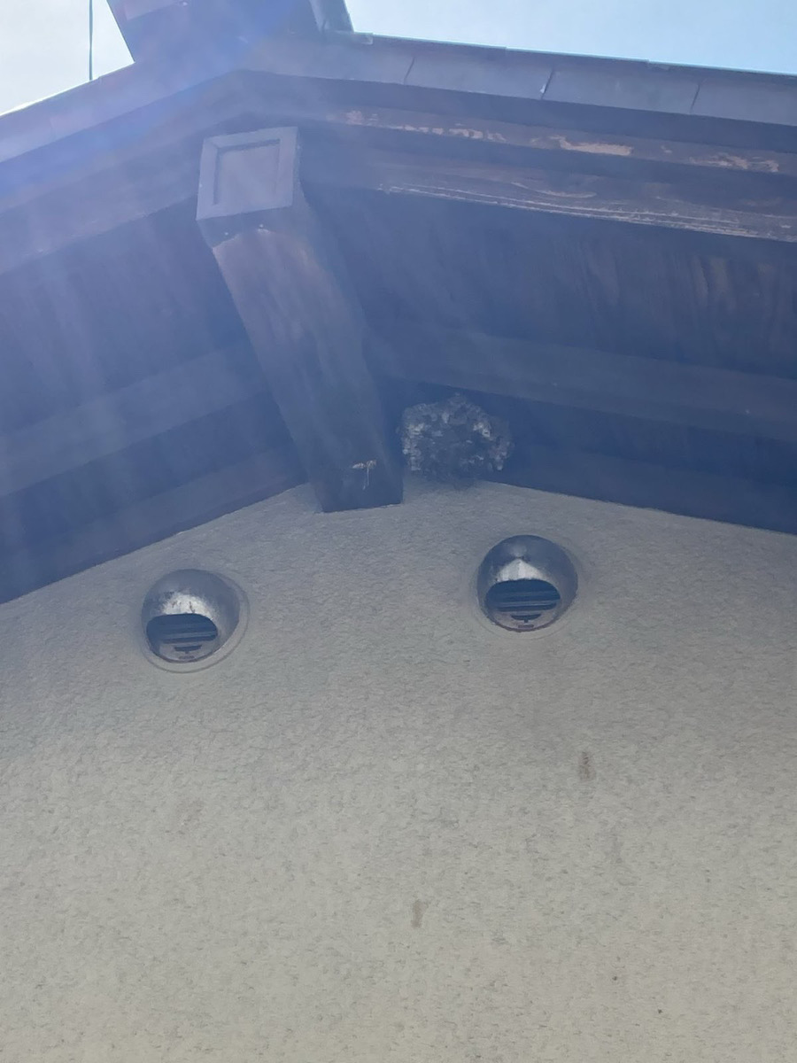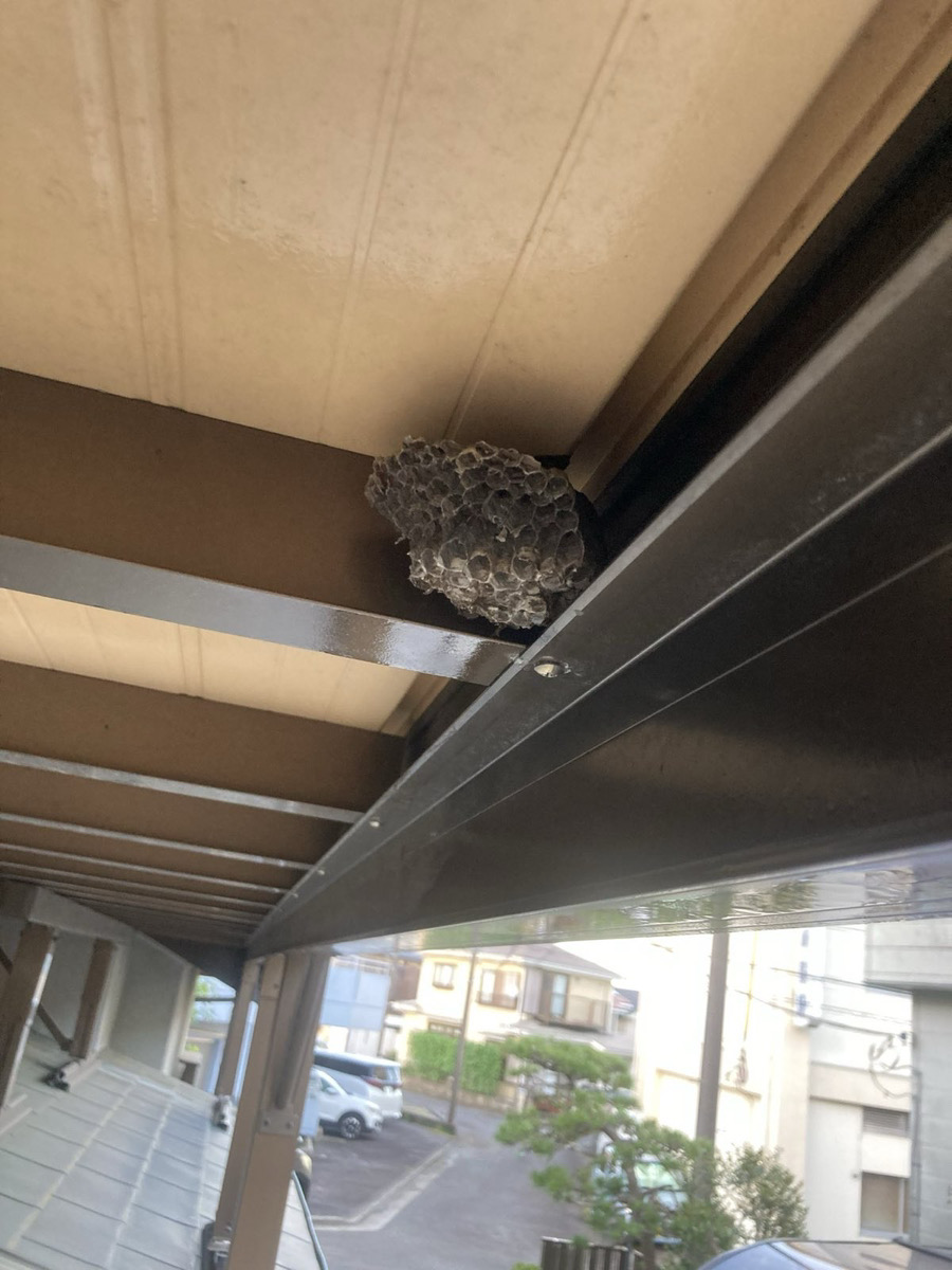 最も多く発見される場所の一つ。大型の巣になりやすく、洗濯物干しや通行時に襲われる危険性が高い場所です。
